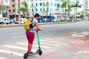 Jovem usa patinete elétrico para locomoção em Santos – SP. 15 de março de 2019.