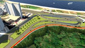 Já os veículos que saem de dentro do bairro Jardim Camburi e trafegam pela Praia de Camburi vão passar por um elevado que seguirá, no sentido Vitória, para a parte da Avenida Dante Michelini.