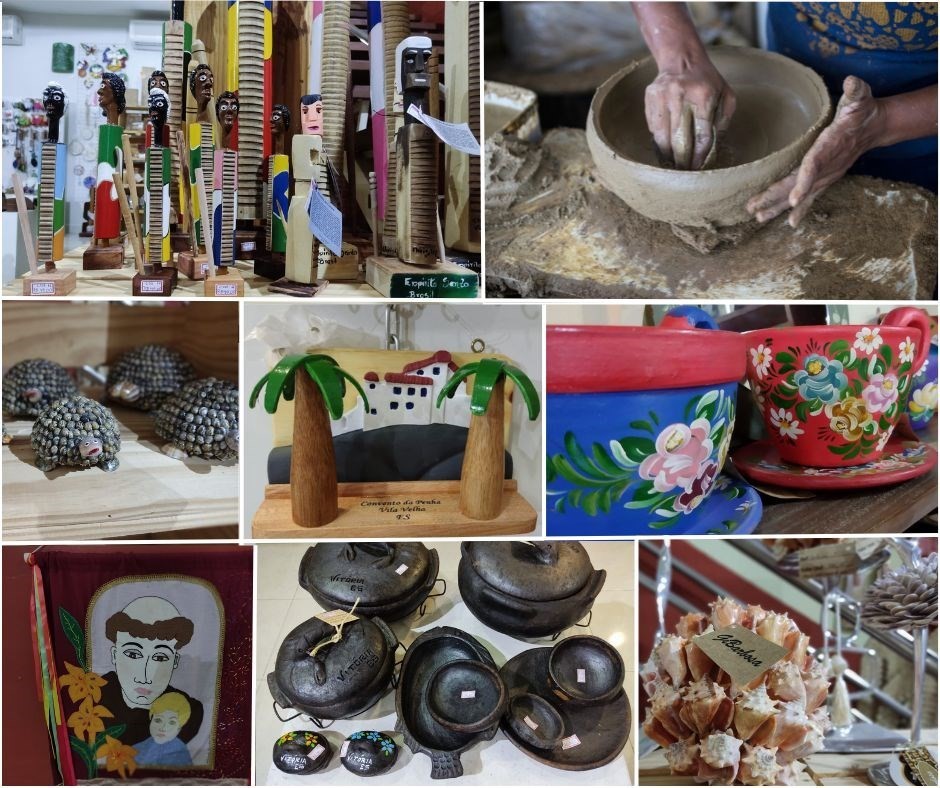 Neste contexto, as panelas de barro, as peças em conchas, as flores de escamas, as casacas – instrumento musical utilizado pelas bandas de congo, principal manifestação da cultura capixaba – e as peças com pinturas no estilo Bauernmalerei, encontradas em Domingos Martins são algumas das opções que são comercializadas em vários pontos de vendas espalhados pelo Espírito Santo.