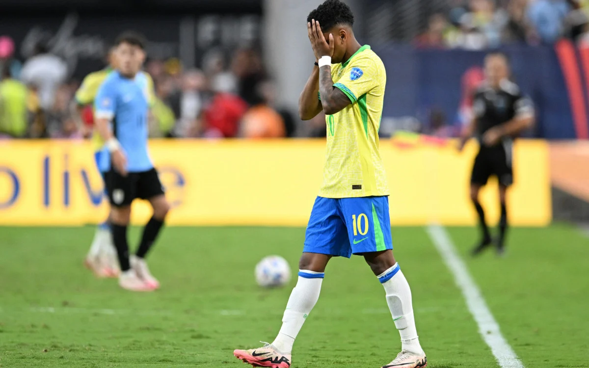 Chegou ao fim a campanha da seleção brasileira na Copa América. Na noite deste sábado (6), no Allegiant Stadium, em Las Vegas, o time comandado por Dorival Júnior não conseguiu sair do empate em 0 a 0 com o Uruguai mesmo com um jogador a mais em metade do segundo tempo, e perdeu nos pênaltis por 4 a 2. Éder Militão e Douglas Luiz desperdiçaram as cobranças do Brasil na disputa.