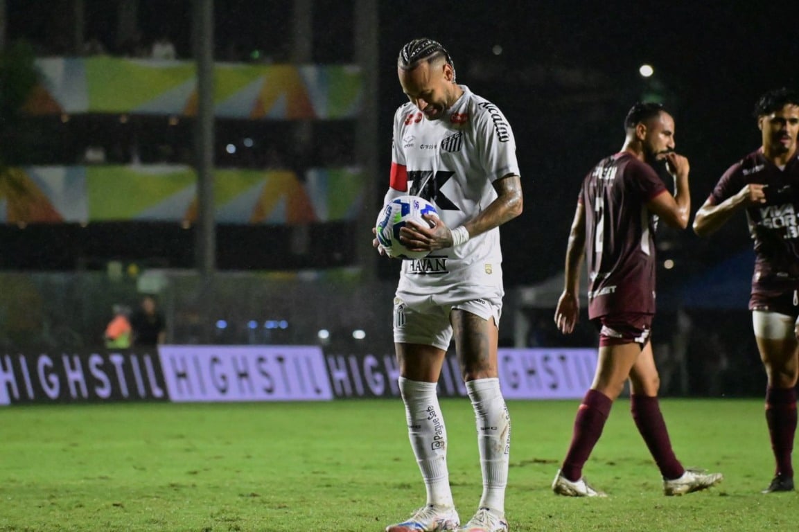 Pouco depois, o craque fez o seu primeiro gol pelo Santos desde que renovou contrato com o clube do litoral paulista. Ele cobrou pênalti sofrido por Souza e abriu o placar no Kleber Andrade, aos 19 minutos.