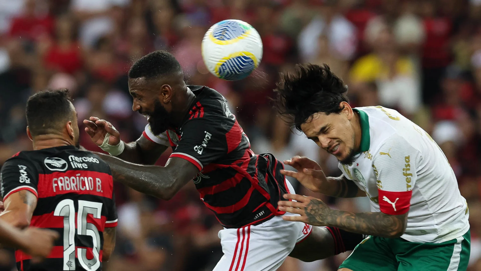 Assim, a máxima “quem não faz, leva” apareceu no Maracanã. Aos 24 minutos, De La Cruz encontrou Gerson, que estava livre pelo lado esquerdo. Sem marcação dentro da área, o Coringa cruzou rasteiro em direção ao meio. A zaga do Palmeiras não fez o corte, e a posse ficou com Arrascaeta. O uruguaio finalizou, a bola ainda desviou na zaga e entrou de mansinho.