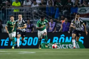 Aos 20, o Verdão desceu pela esquerda com Luis Guilherme, que foi travado por Gil. No rebote, Endrick mandou uma bomba na rede pelo lado de fora.
