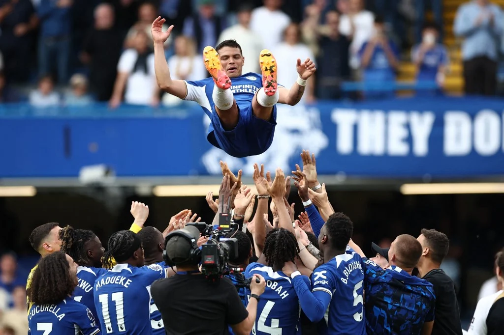 Neste domingo, o zagueiro Thiago Silva foi homenageado pelos torcedores do Chelsea antes da vitória da equipe contra o Bournemouth por 2 a 1, no Stamford Bridge, pela 38ª rodada do Campeonato Inglês. O defensor de 39 anos realizou sua última partida pelo clube de Londres. E, agora, vestirá a camisa do Fluminense.