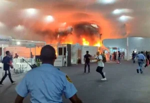 Incêndio atinge pavilhão da COP30 e causa correria na Zona Azul