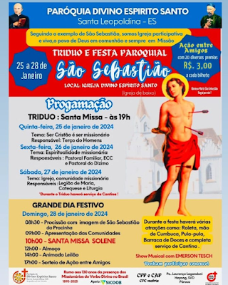 Dia: 28/01/2024 (Domingo) – Festa de São Sebastião