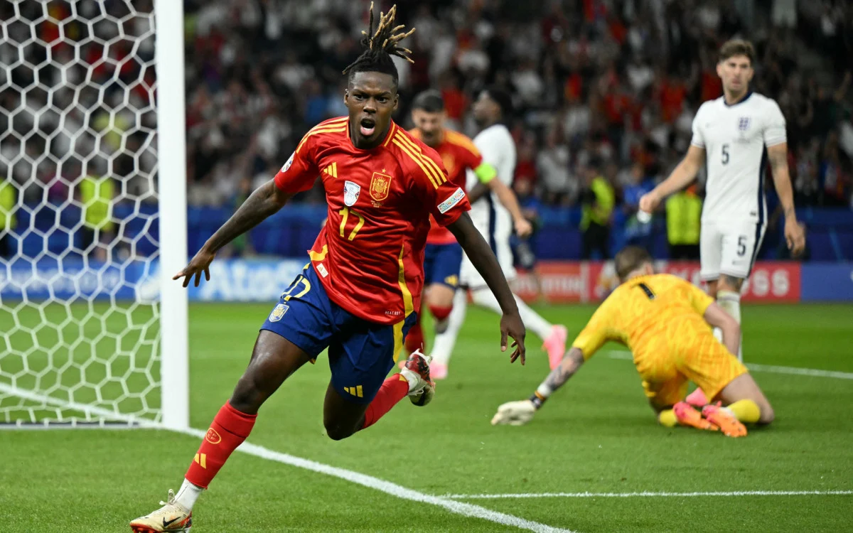 A Espanha é a primeira seleção tetracampeã da Eurocopa. Com gols de Nico Williams e Mikel Oyarzabal, os espanhóis venceram a Inglaterra por 2 a 1, neste domingo (14), no Estádio Olímpico de Berlim, e conquistou o título europeu pela quarta vez na história. Cole Palmer descontou para os ingleses.