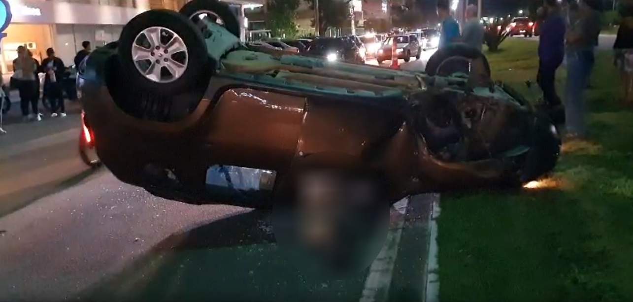 Carro capota e deixa trânsito congestionado na Avenida Norte Sul