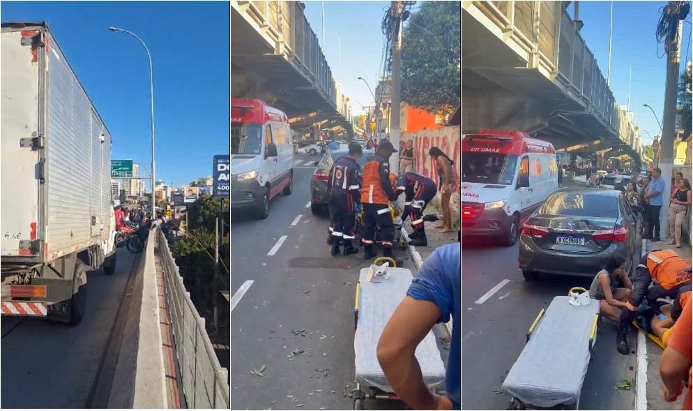 O caso aconteceu na tarde desta quarta-feira (12). A vítima “voou” da pista da ponte, passou por cima da grade de segurança, onde fica a ciclovia, e caiu em cima de um carro que estava estacionado.