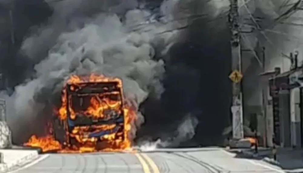 Ônibus incendiado perto da subida da Terceira Ponte, em Vitória