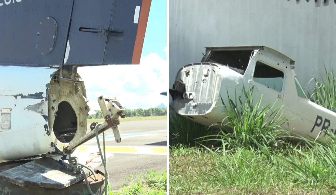 Na manhã desta sexta-feira (7), as asas direitas, hélices, os motores e o estabiprofundor de duas aeronaves foram localizadas em um campo no bairro Tartaruga. Com parte das peças recuperadas, o proprietário fará um boletim de ocorrência na Polícia Civil para dar continuidade às investigações.