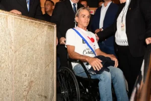 O deputado eleito, Sergio Meneguelli (Republicanos), que fez uma delicada cirurgia, compareceu à cerimônia e foi conduzido em cadeira de rodas, fazendo o juramento de posse sentado em função da sua condição pós-operatória.