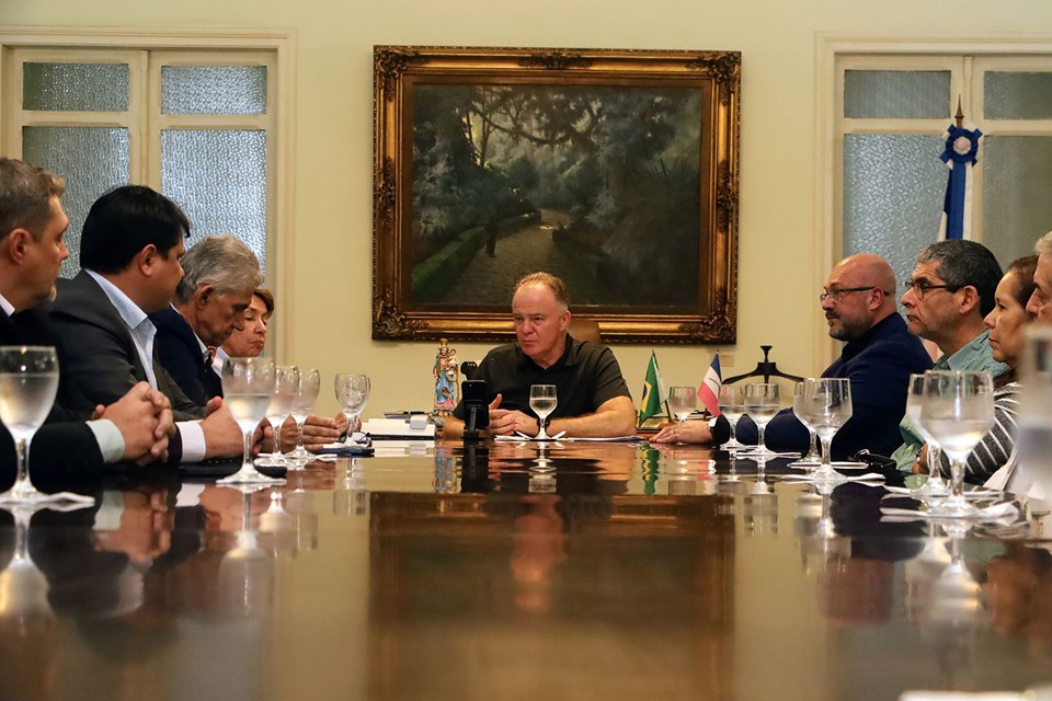 Durante a agenda, o governador participou ainda de um encontro com as forças de segurança do município, reunindo representantes da Polícia Militar, Corpo de Bombeiros, Polícia Civil e Guarda Municipal, reforçando a integração das instituições e as ações do programa Estado Presente em Defesa da Vida.