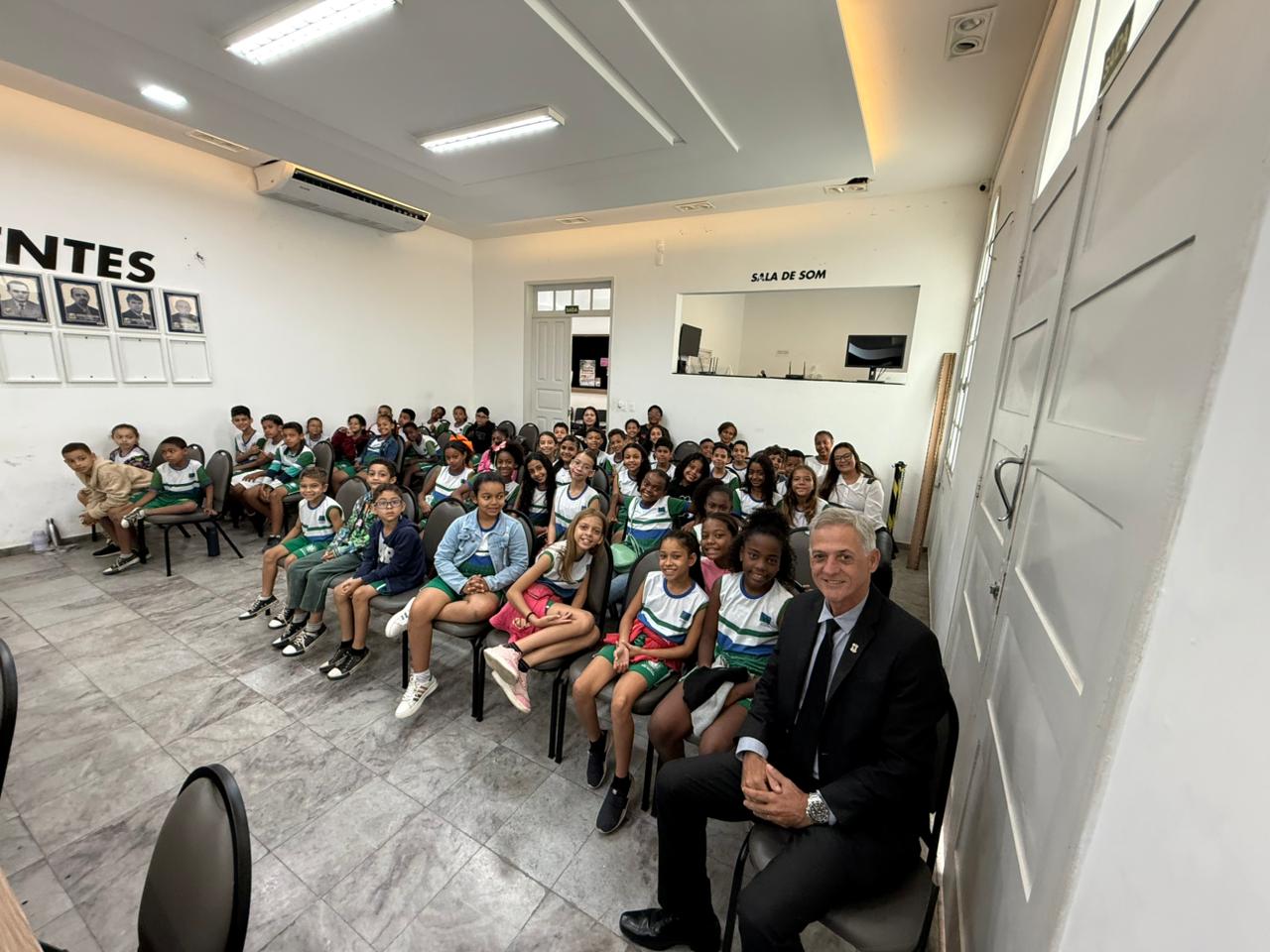 Durante a visita, os estudantes puderam conhecer o funcionamento do Poder Legislativo Municipal, suas principais atribuições e a estrutura organizacional da Câmara. A ação proporcionou momentos de aprendizado e interação, contribuindo para o desenvolvimento da educação cidadã e o fortalecimento do vínculo entre o Legislativo e a comunidade escolar.