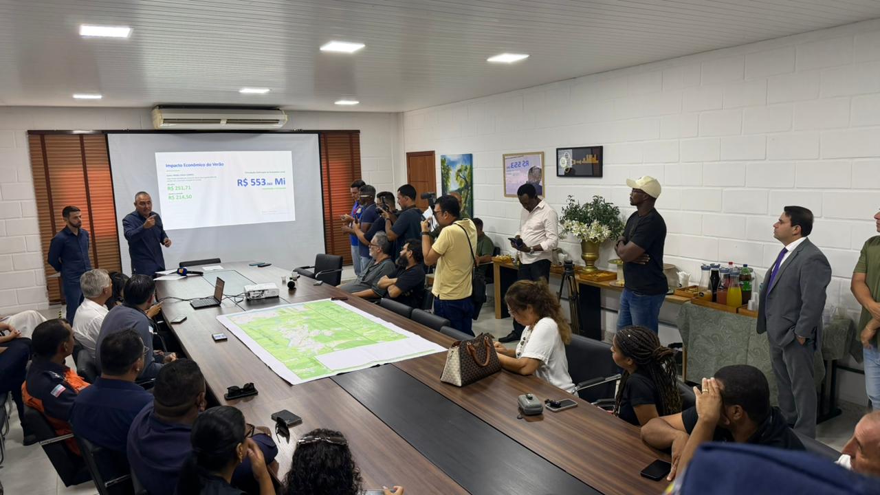 A coletiva foi realizada nesta segunda-feira (23) e contou com a presença do presidente da Câmara, Wanderlei Segantini (MDB); do subcomandante do 13º Batalhão da Polícia Militar, major Antônio Ednis Bergamin Júnior; do capitão Davi Pedrosa, do Corpo de Bombeiros; além de secretários municipais, vereadores, integrantes da Guarda Municipal e guarda-vidas.