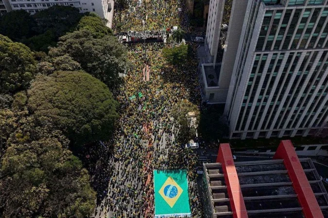 As manifestações aconteceram em São Paulo, Brasília e Rio de Janeiro, onde os participantes vestiram verde e amarelo e exibiram cartazes em que agradeciam ao presidente americano, Donald Trump.