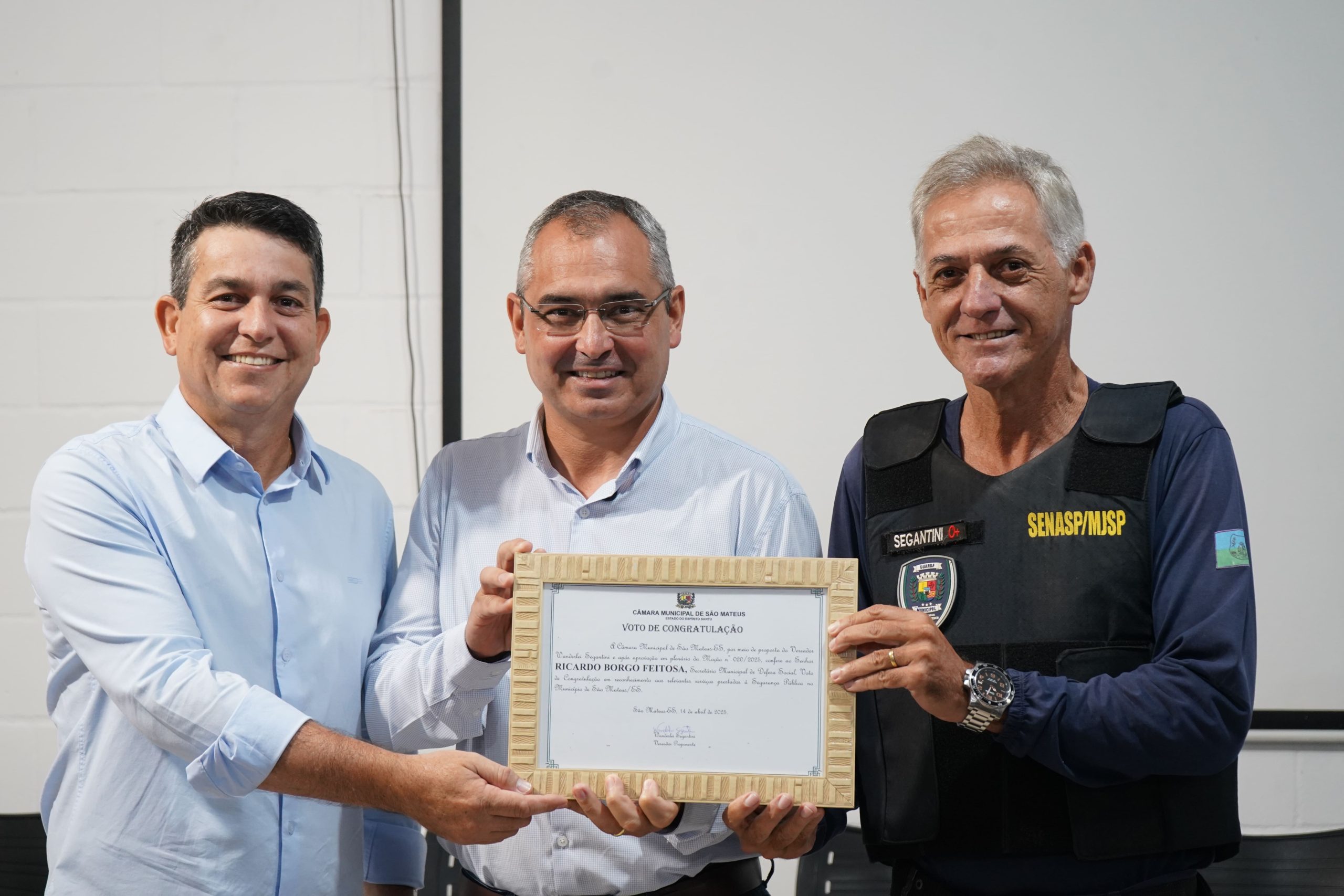 A Guarda Municipal de São Mateus e seus membros foram homenageados recebendo Voto de Congratulação da Câmara e da Prefeitura, em cerimônia realizada nesta quarta-feira (30). O evento aconteceu no auditório da sede da municipalidade e foi uma iniciativa da presidência da Câmara e de seus membros.