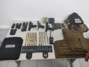 De acordo com o secretário de Segurança de Vitória, Amarílio Luiz Boni, o carro onde estavam os quatro suspeitos foram localizadas a granada, três armas de fogo e um colete à prova de balas.
