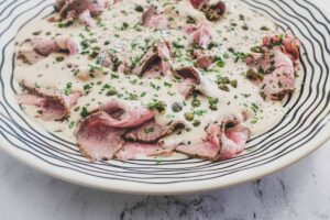 A culinária de Turim é um verdadeiro deleite para os amantes da comida italiana. Os pratos tradicionais de Piemonte são conhecidos por sua simplicidade e sabor. O “vitello tonnato” (foto), um prato frio de carne de vitela fatiada com um molho de atum e maionese, é uma iguaria local que agrada a todos os paladares. Outro destaque é o “risotto al tartufo”, um delicioso risoto preparado com trufas, uma especialidade regional.